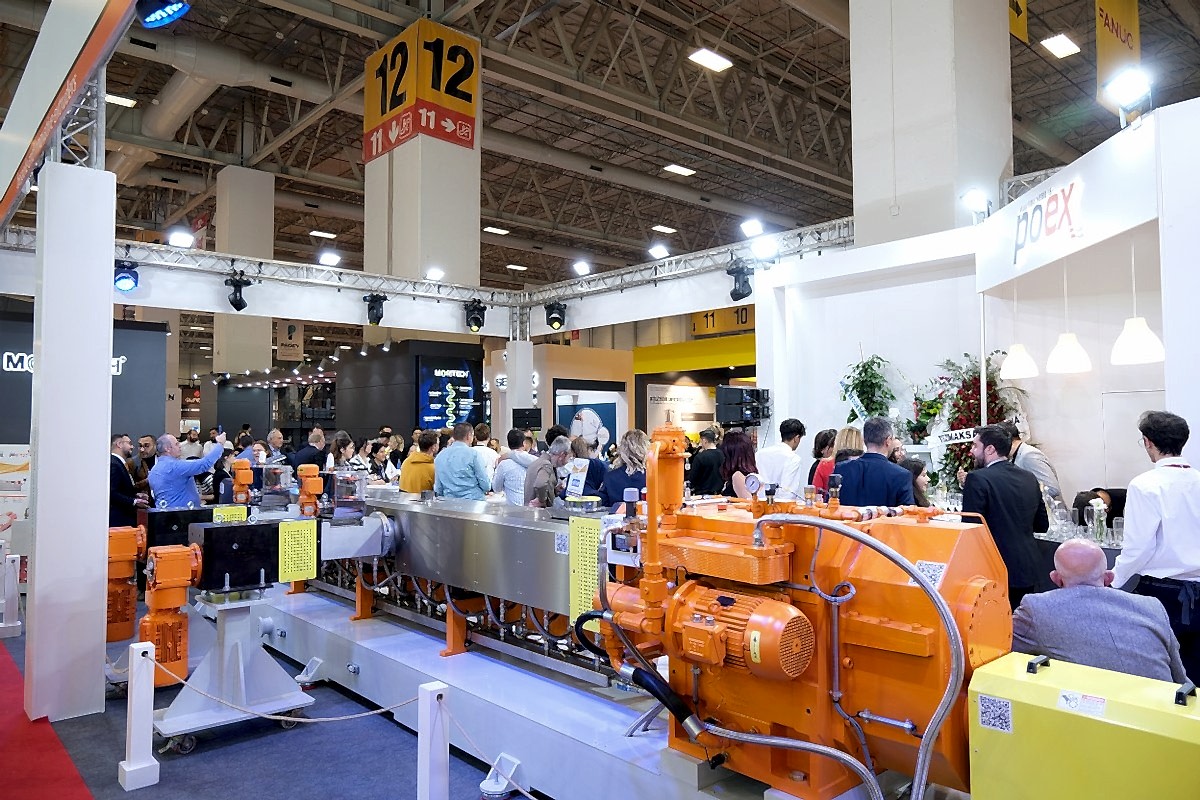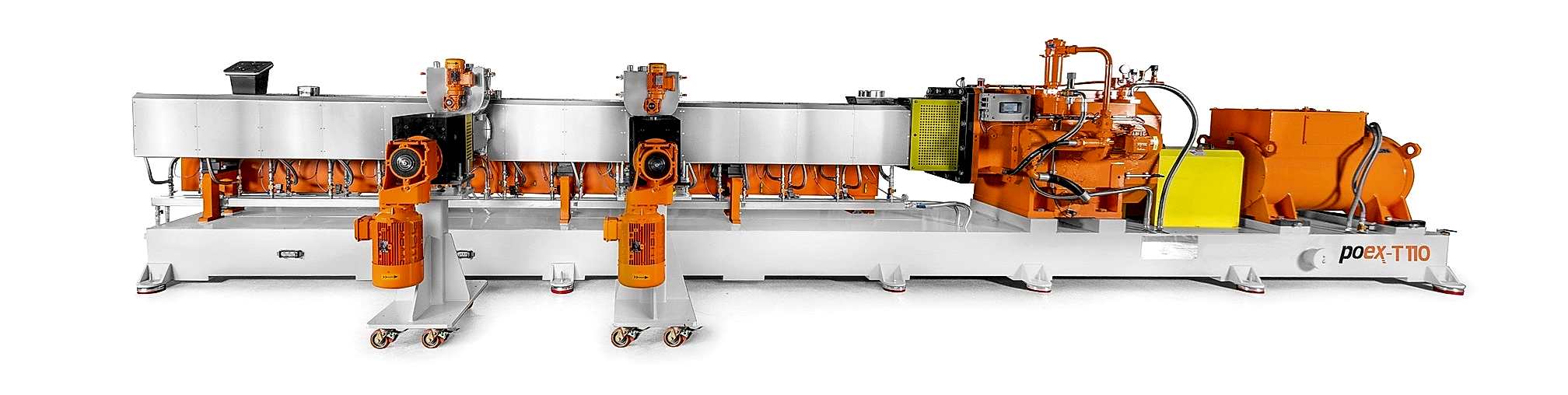 Polimer Teknik, kompaund sektörünün yüksek kapasite ihtiyaçlarına cevap oluşturacak ekstrüder hattını piyasaya sundu. İlk olarak Plast Eurasia İstanbul 2022 Fuarı’nda sergilenen poex T110 aynı yöne dönen çift vidalı ekstrüder, 108 mm vida çapına sahip, 570 kW su soğutmalı yüksek verimli Elin motor, Mayr tork limitörü, yüksek çıkış torkuna sahip Zambello redüktörüne sahip. Ekstrüder, yüzde 83’e varan mineral dolgu imkanı ve saatlik 2500 kilogramlık üretim kapasitesi ile yükseklik dolgulu kompaund pazarına hitap ediyor. poex T110 hattına akuple ettiği yenilikçi bakım monitörü, tam otomatik yağlama sistemi ve kullanıcı dostu endüstriyel yazılımı ile kullanıcılarına hem kestirimci bakım hem de minimum üretim kaybı sunuyor.