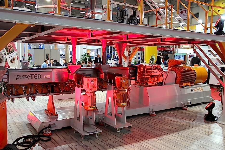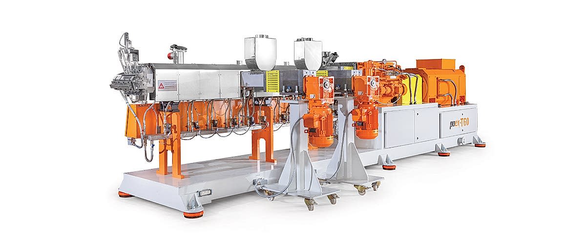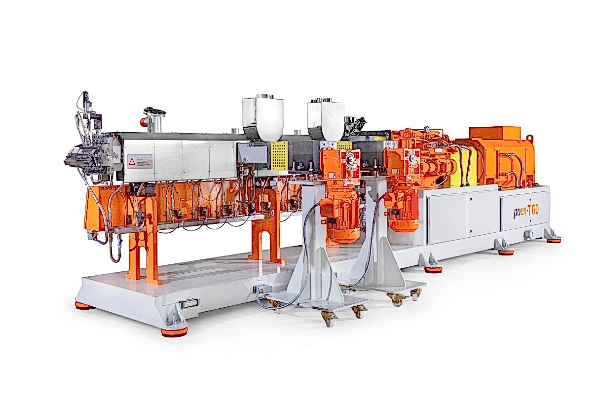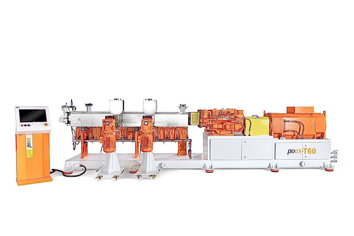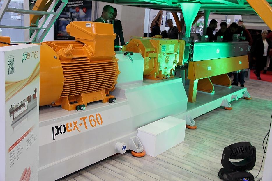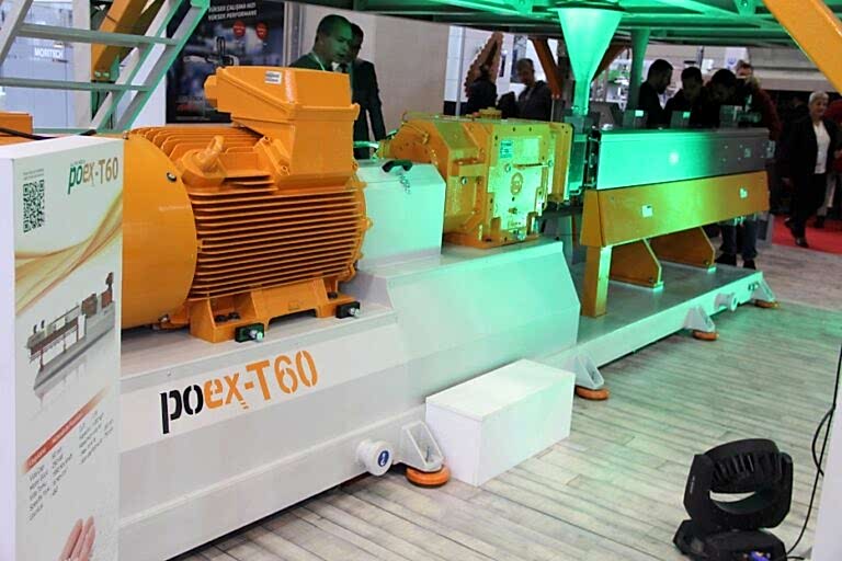 Polimer Teknik, 16 Nm/cm3 yüksek tork yoğunluğuna sahip, 58 mm vida çapına ve maksimum 900 rpm devire sahip yeni bir cam elyaf takviyeli kompaund üretim hattı poex T60HT aynı yöne dönen çift vidalı ekstrüder hattını başarıyla test etti ve piyasaya sürdü.