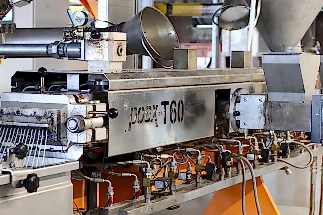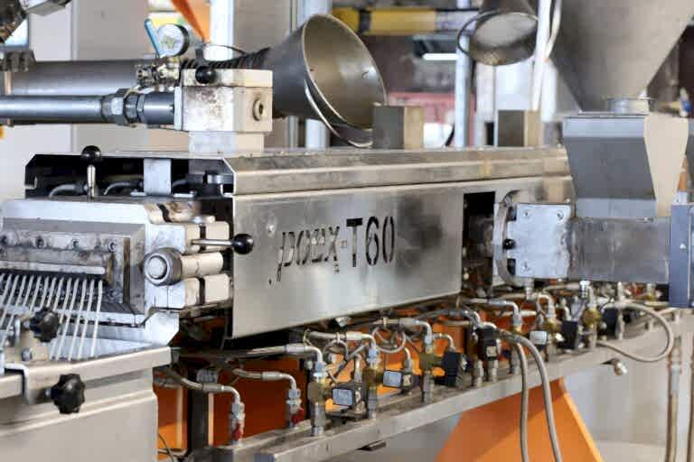 Bu, standart poex T60 ekstrüderi olan 12 Nm/cm3‘e kıyasla yüzde 50 daha yüksek kapasite sağlayan poex T60HT ekstrüderinin en yüksek performanslı ürünüdür. Ekstrüder hattı, çeşitli dolgu maddelerinin eklenmesine olanak tanımak için iki yan besleyici ile donatılmıştır ve hat 4 komponentli Brabender gravimetrik dozajlamalar ile desteklenmiştir. Strand kalıbı üretimi öncesi Ansys CFD analiz yazılımı ile mühendislik çalışmaları desteklenmektedir.